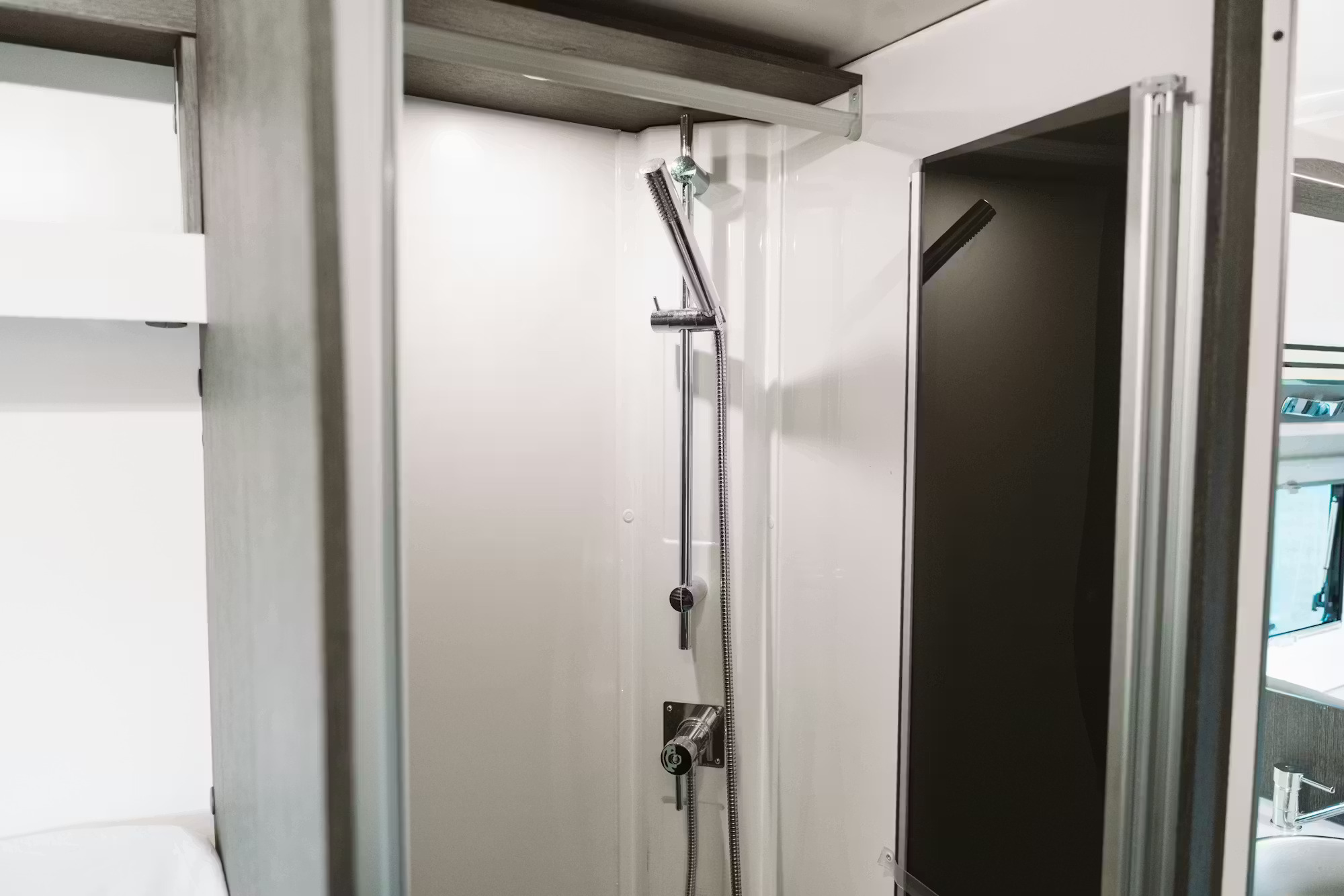 Las opciones para dormir incluyen una cama fija trasera, una cama sobre cabina y un salón convertible, proporcionando flexibilidad y comodidad tanto para adultes como para niñes. La cocina totalmente equipada cuenta con una cocina de gas, fregadero y frigorífico, dándote todo lo que necesitas para preparar comidas mientras estás en ruta. La zona de salón sirve como un espacio acogedor para comidas familiares, juegos o para relajarse en el interior. El baño integrado incluye un inodoro, lavabo y ducha, asegurando que todos los elementos esenciales estén cubiertos para una experiencia de viaje sin estrés y autónoma.